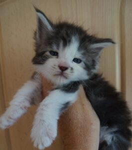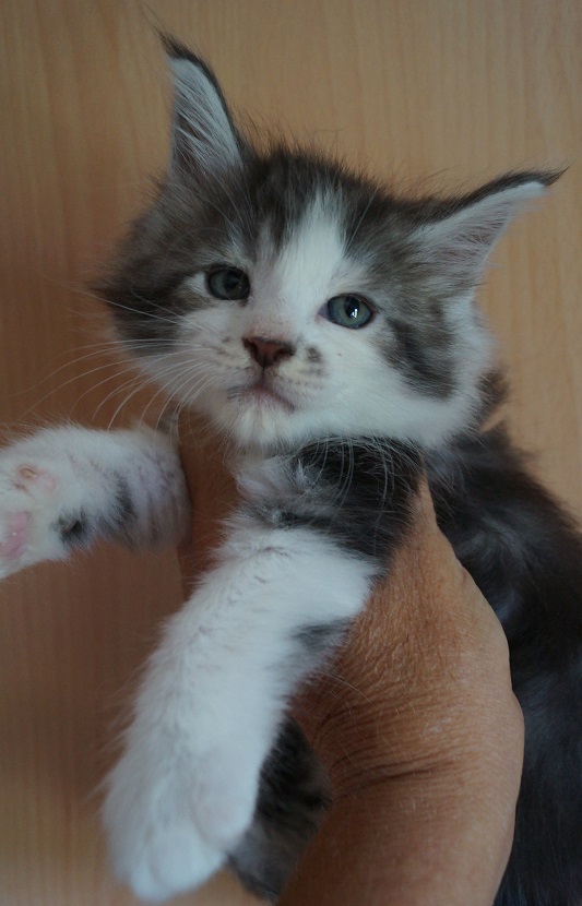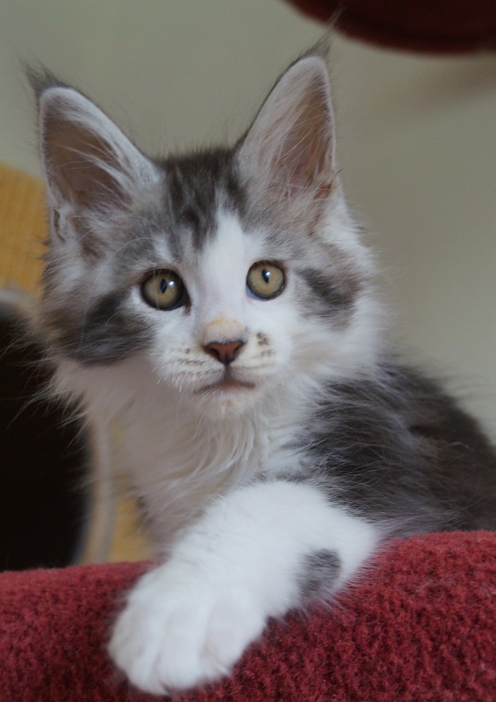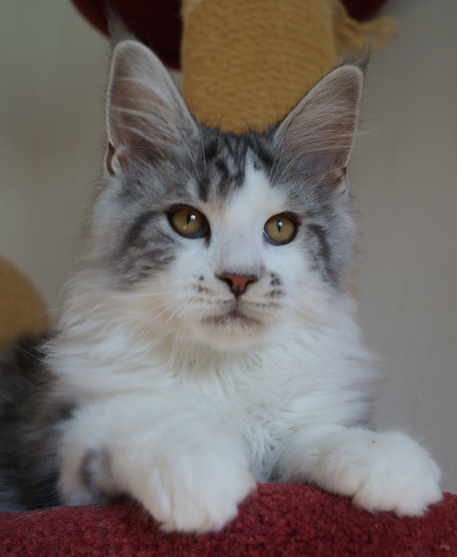 Elsa vom Fuchsenwald (black silver tabby mc./white) |